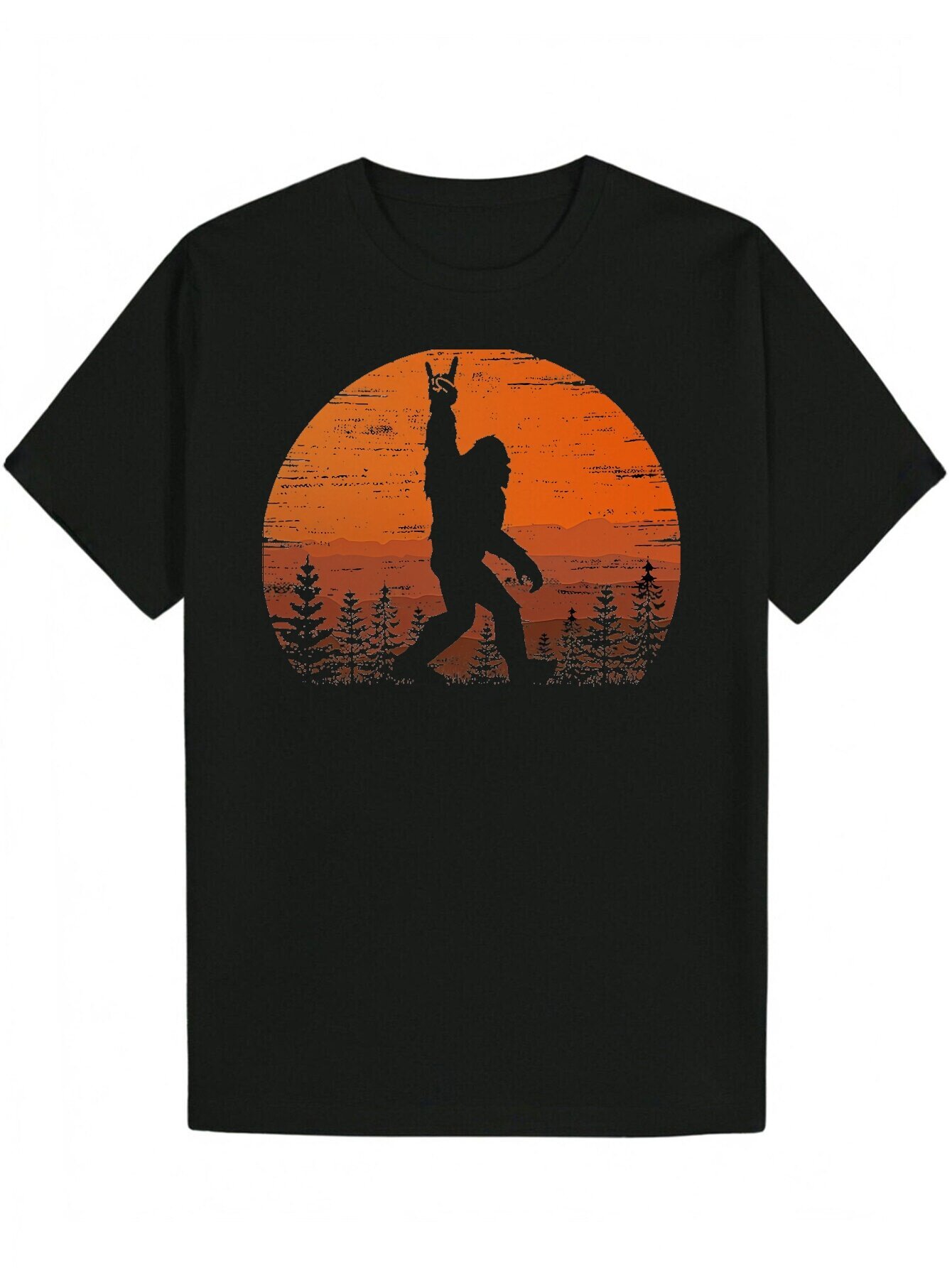 [1pc Funny Graphic T-Shirt] 1pc Men'S Casual Summer T-Shirt, Black Polyester Knit with Silhouette Graphic, Round Neck, Short Sleeve, Breathable Fabric, Regular Fit - Humorous Vintage Style Gift for Men