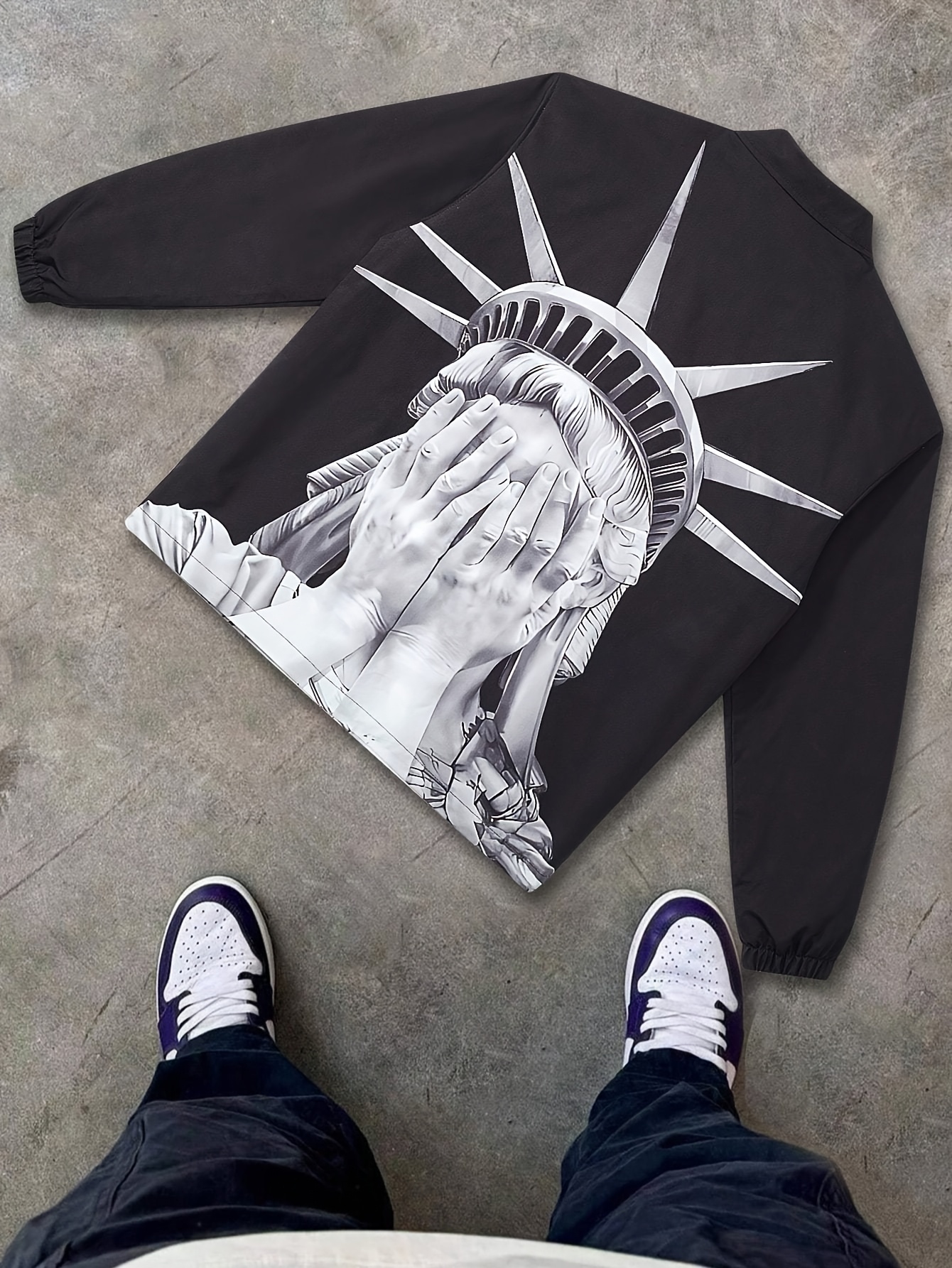 Gentlemen's Jacket Men's Spring and Autumn Thin Casual Lapel Portrait Print Trendy Fashion Zip-Up Outerwear Long Sleeve