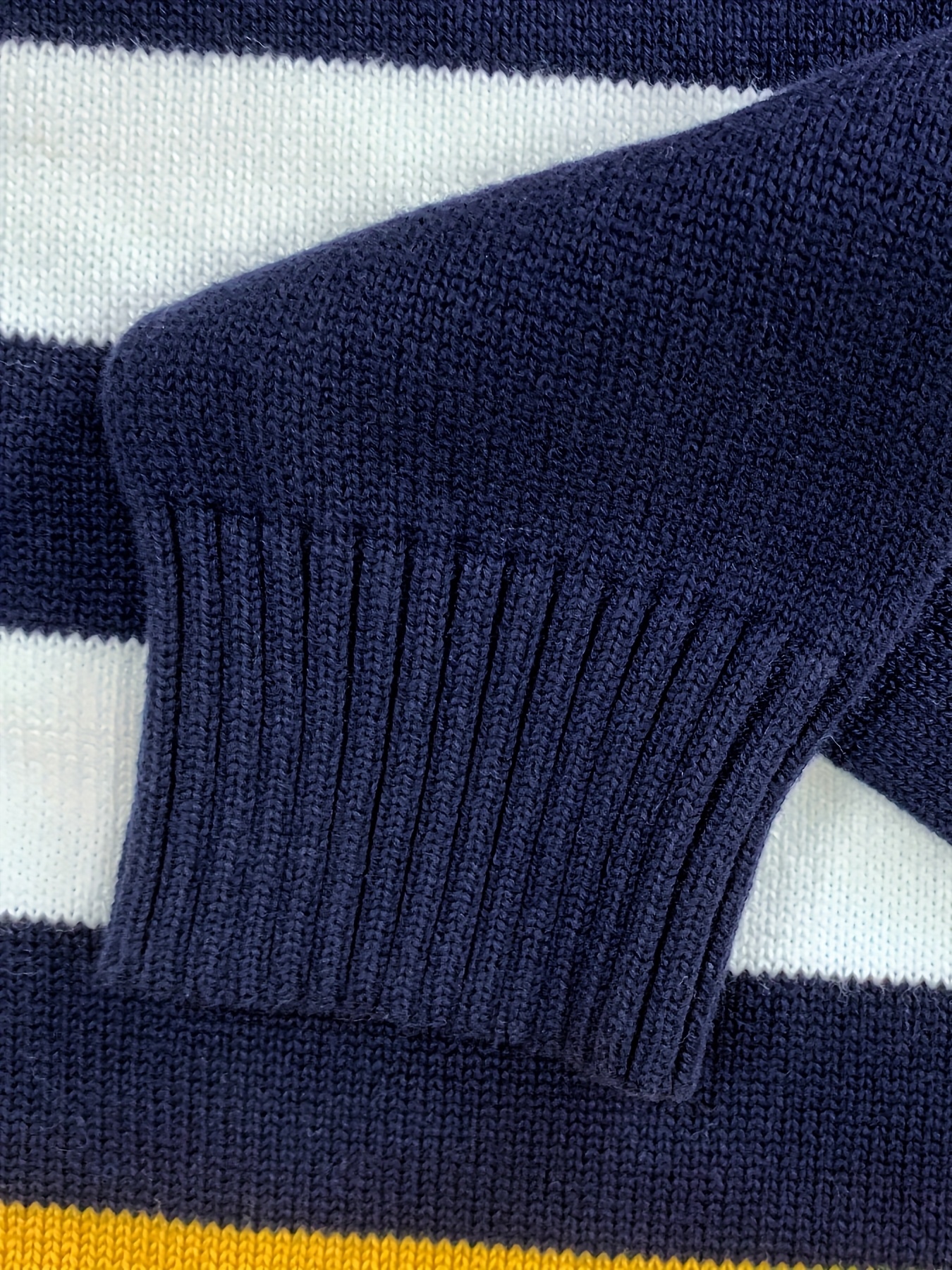 Men'S Casual Striped Sweater - Cozy Knit Pullover with Yellow, White & Navy Blue Horizontal Stripes, Long Sleeve Crew Neck for Fall/Winter, Sweater Vest