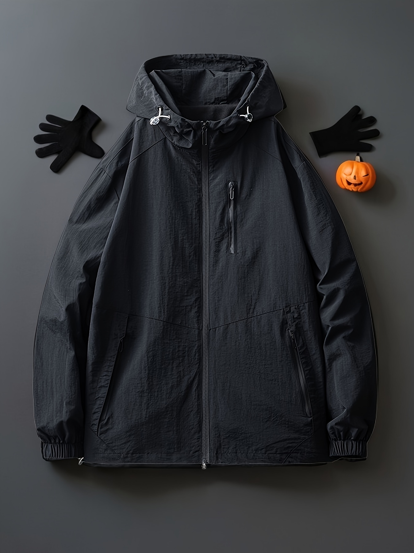 1pc Men's Casual Hooded Jacket, Solid Color, Long Sleeve, Regular Fit, Non-Stretch Fabric, Multiple Pockets, Woven Outerwear for Spring/Fall