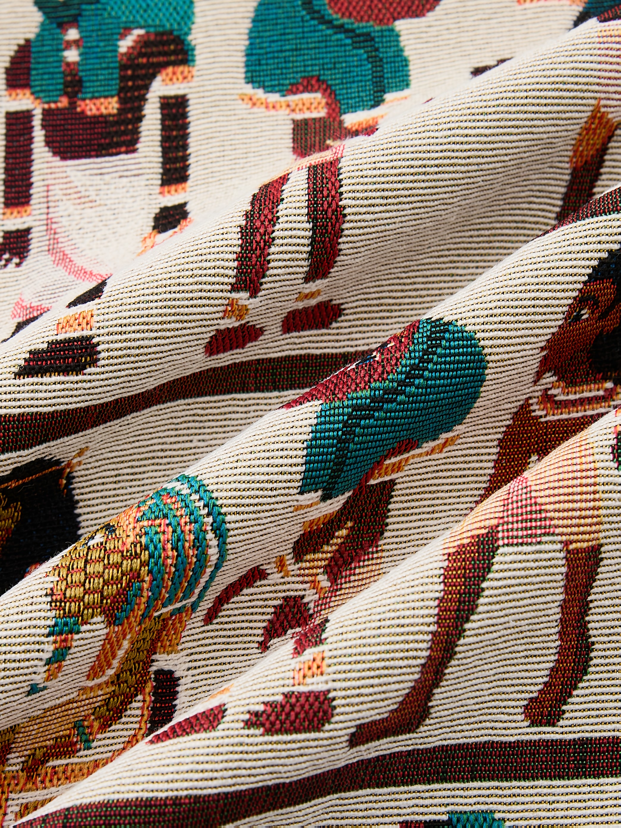 Larsen OBM Unisex Slim-Fit Long-Sleeve Shirt Jacket - Vintage Abstract Egyptian Embroidery, All-Season Casual Outdoor Wear, Machine Washable, Perfect Gift for Men & Women