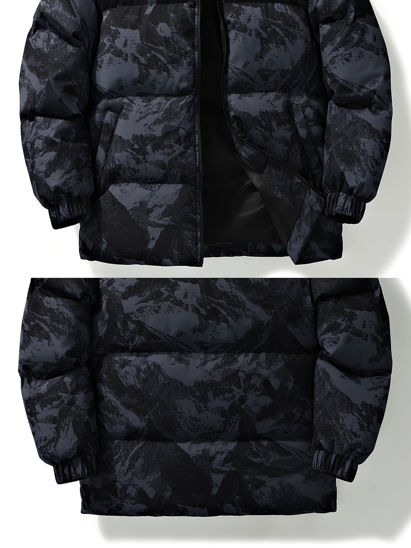 Men'S Retro Vintage Money Print Jacket - Stylish Black & White Patterned Coat with Stand Collar, Zipper Closure, and Pockets for Casual or Daily Wear, Casual Outerwear | Vintage Style Coat | Polyester Fiber Jacket