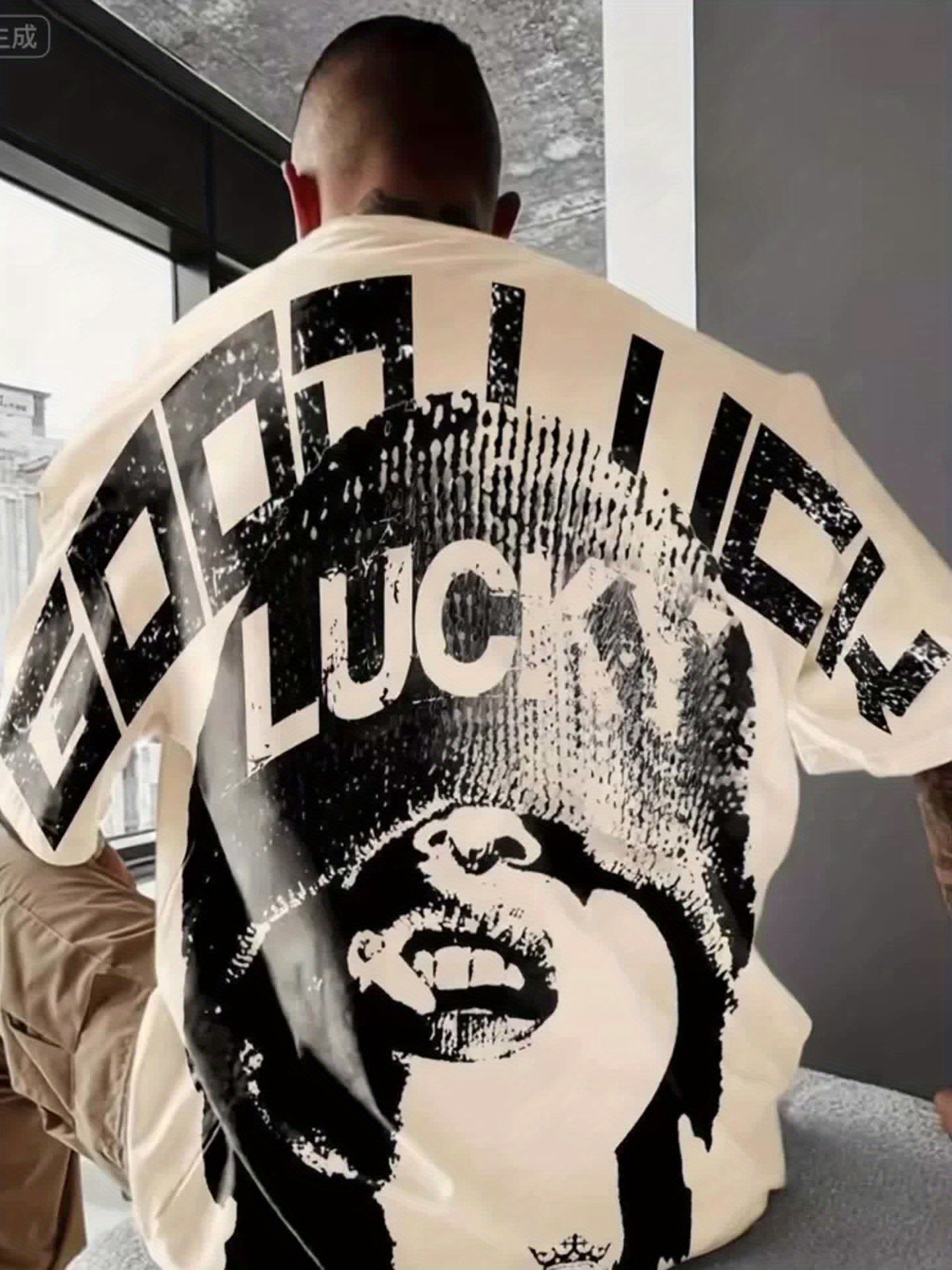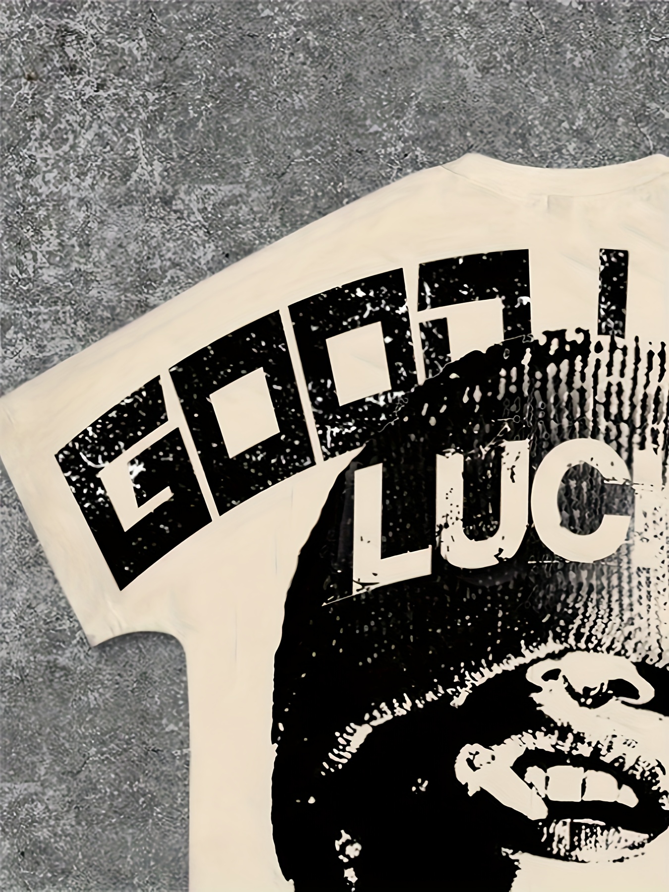 Men's Casual Graphic Print T-Shirt with Bold "GOOD LUCK" Back Design - Summer Relaxed Fit Round Neck Tee, Machine Washable for Casual Attire, Trendy Casualwear, Breathable Fabric