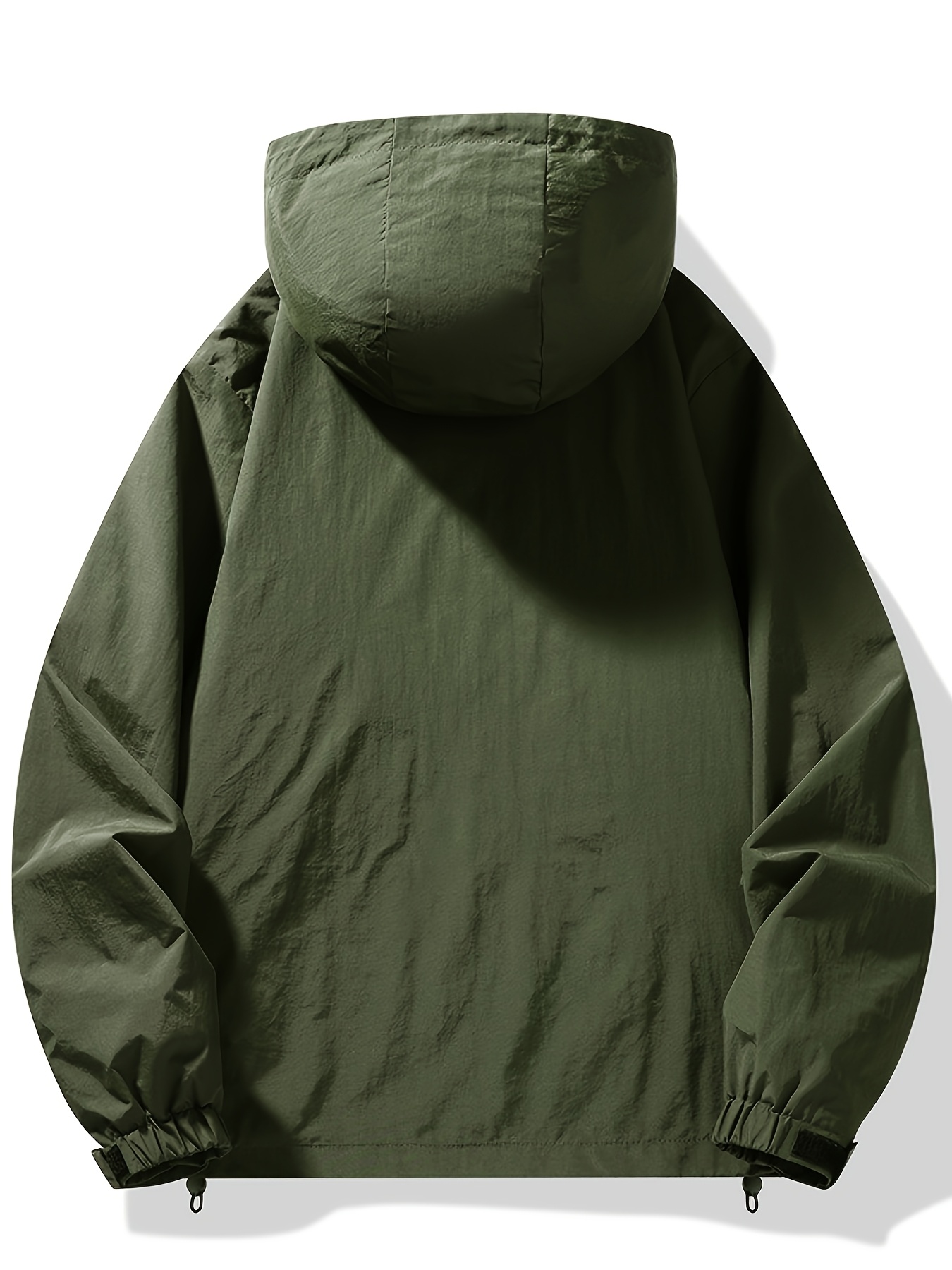 Men's Windproof Hooded Jacket - Casual Outdoor Pullover with Zipper Pockets, Long Sleeve, Machine Washable, Green Polyester Fabric for Spring/Fall, Windbreaker Jacket