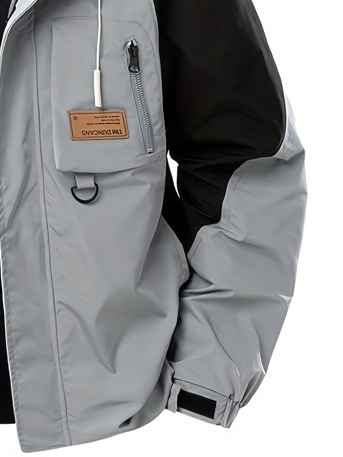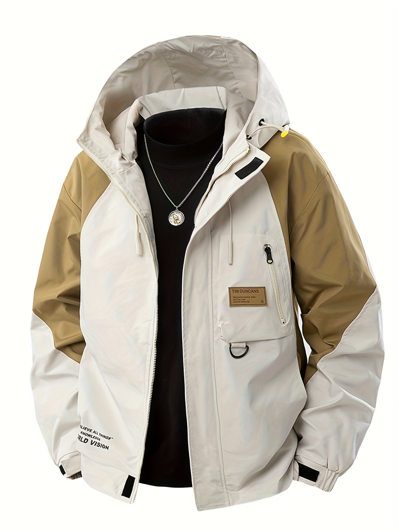 Men's Windproof Hooded Jacket for Spring & Autumn - Lightweight Work Jacket with Zipper Closure, Contrast Color Block Design, Polyester Lining & Pockets - Outdoor Sports, Hiking, Casual Wear