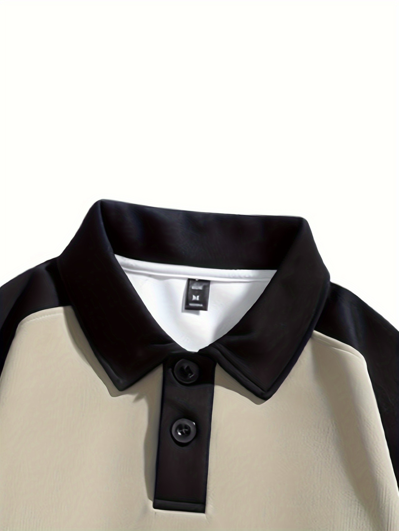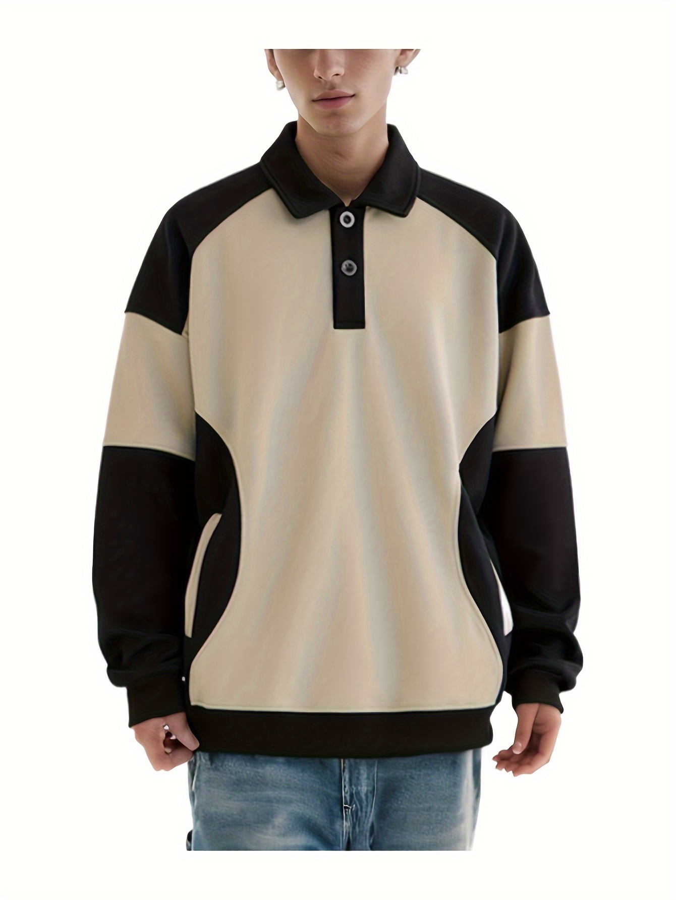 [NASAOVER Long Sleeve Shirt] Men's NASAOVER Colorblock Long Sleeve Shirt - Casual Loose Fit, Two-Tone Black/Beige, Button Detail, Ideal for Spring & Summer Outdoor Activities