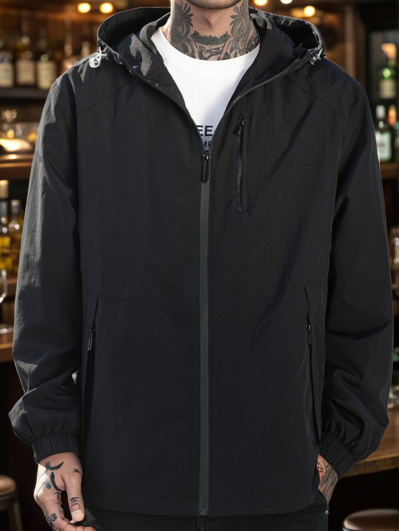 1pc Men's Casual Hooded Jacket, Solid Color, Long Sleeve, Regular Fit, Non-Stretch Fabric, Multiple Pockets, Woven Outerwear for Spring/Fall