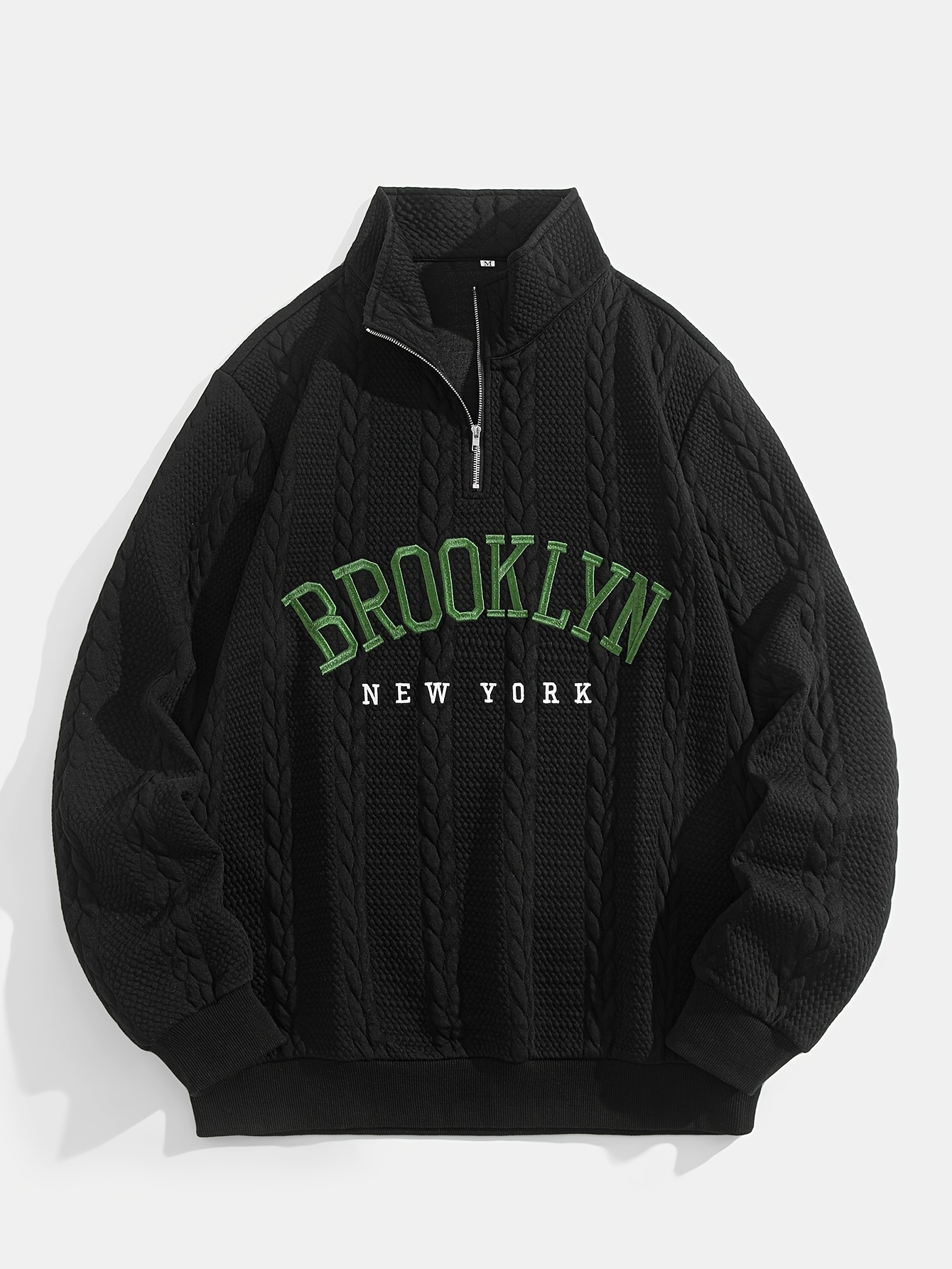 Jacquard Preppy Collared Neck Long Sleeve Embroidered Loose Fit Regular Length Knit Fabric Hoodie