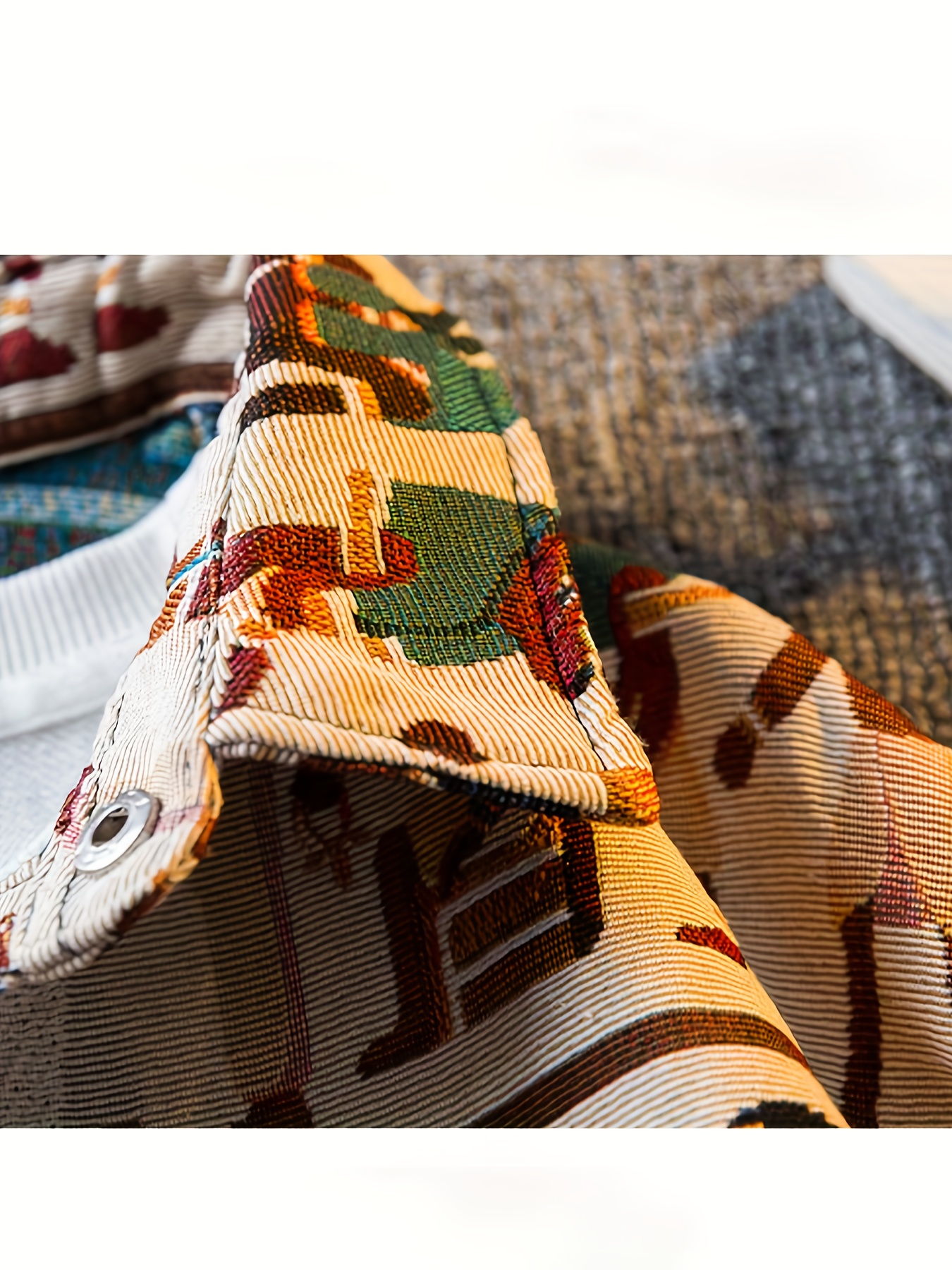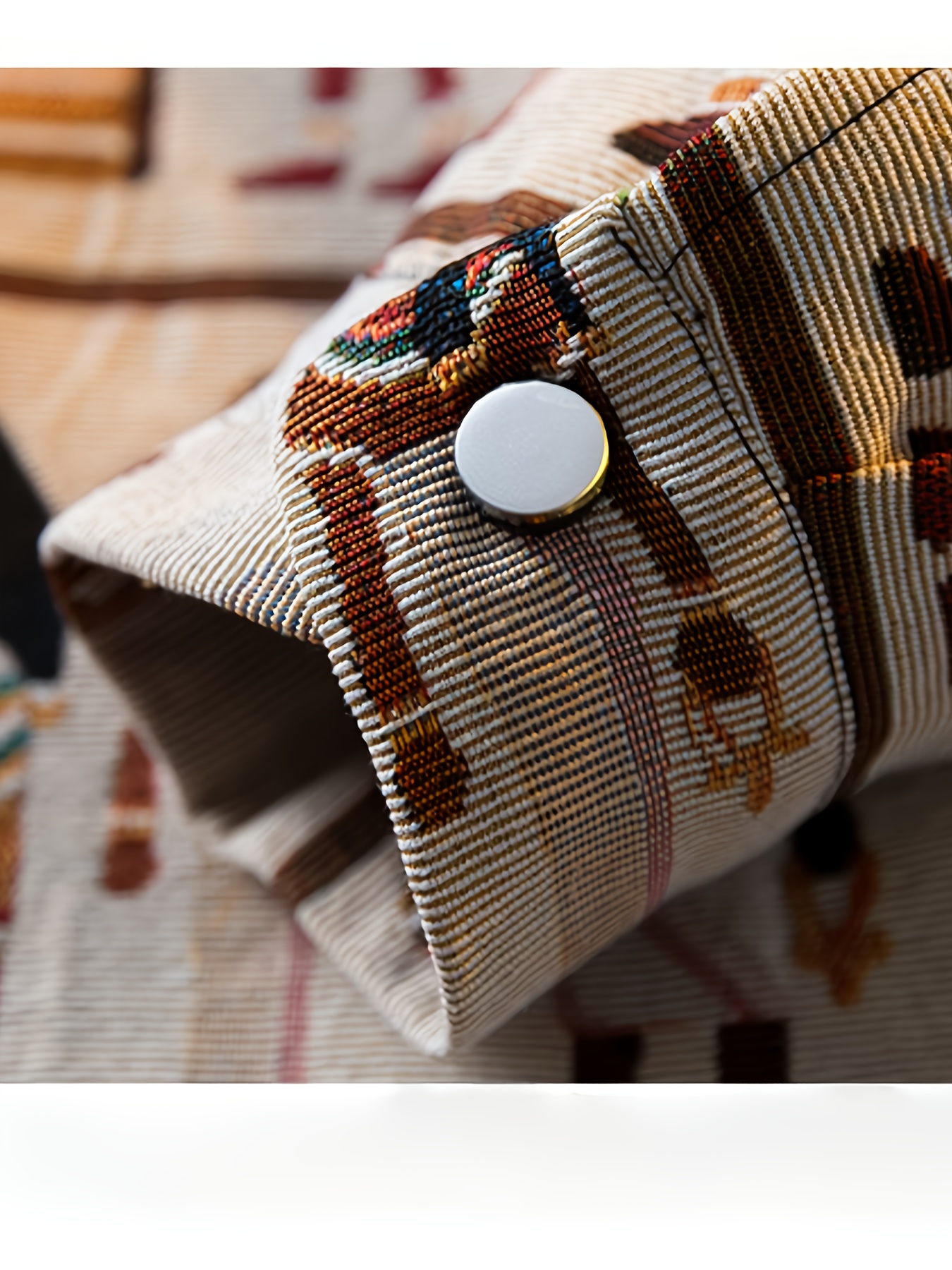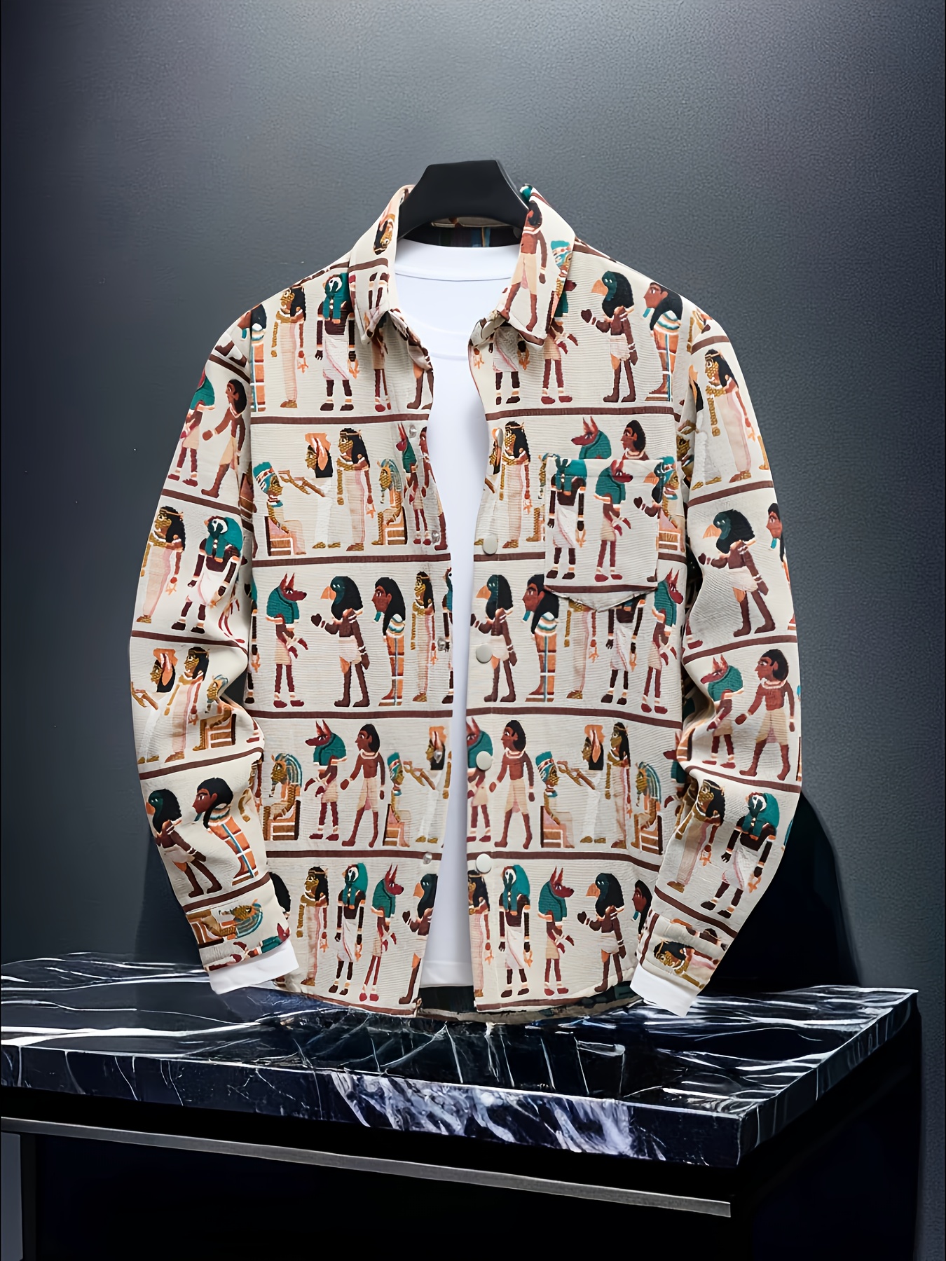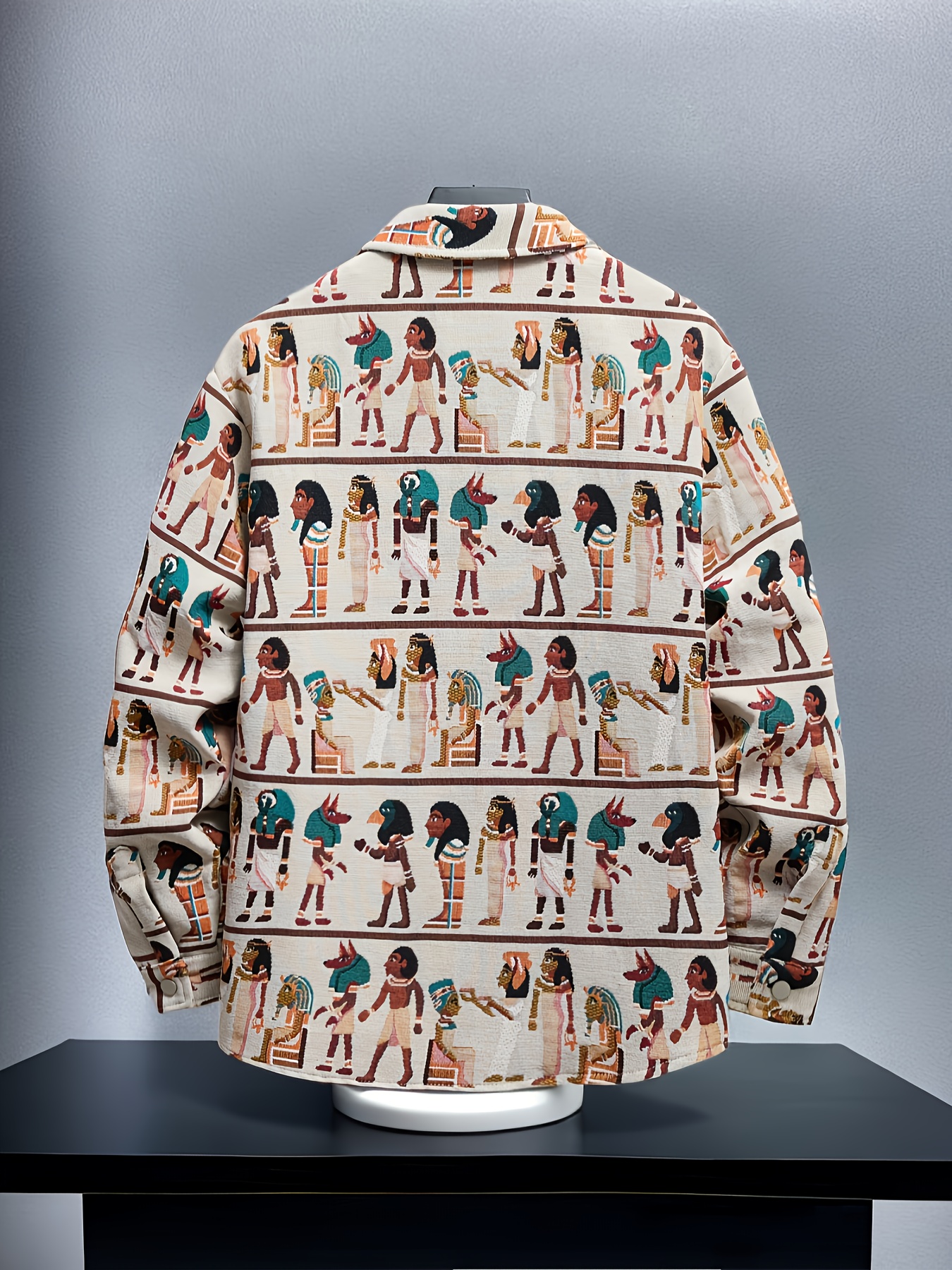 Larsen OBM Unisex Slim-Fit Long-Sleeve Shirt Jacket - Vintage Abstract Egyptian Embroidery, All-Season Casual Outdoor Wear, Machine Washable, Perfect Gift for Men & Women