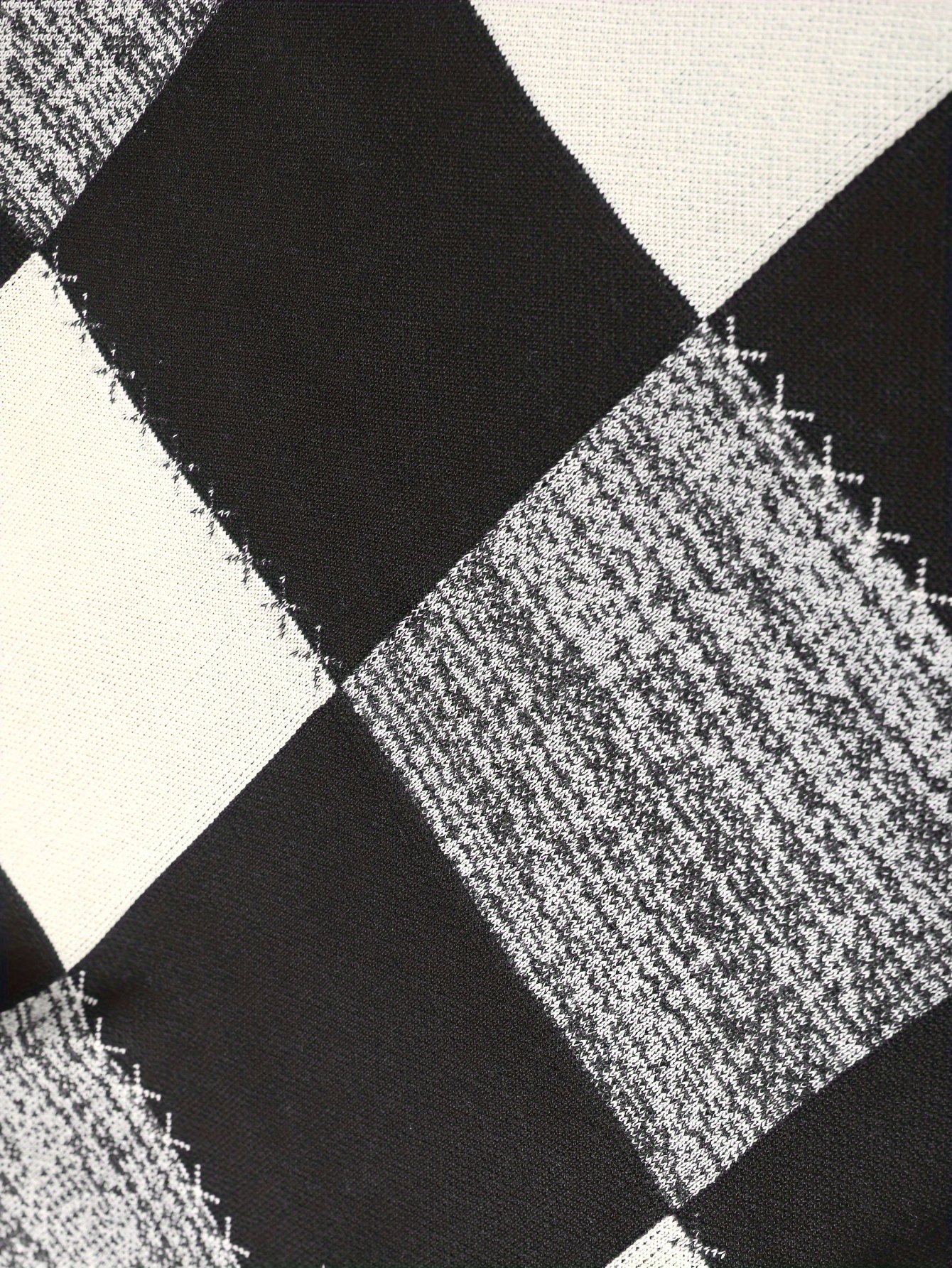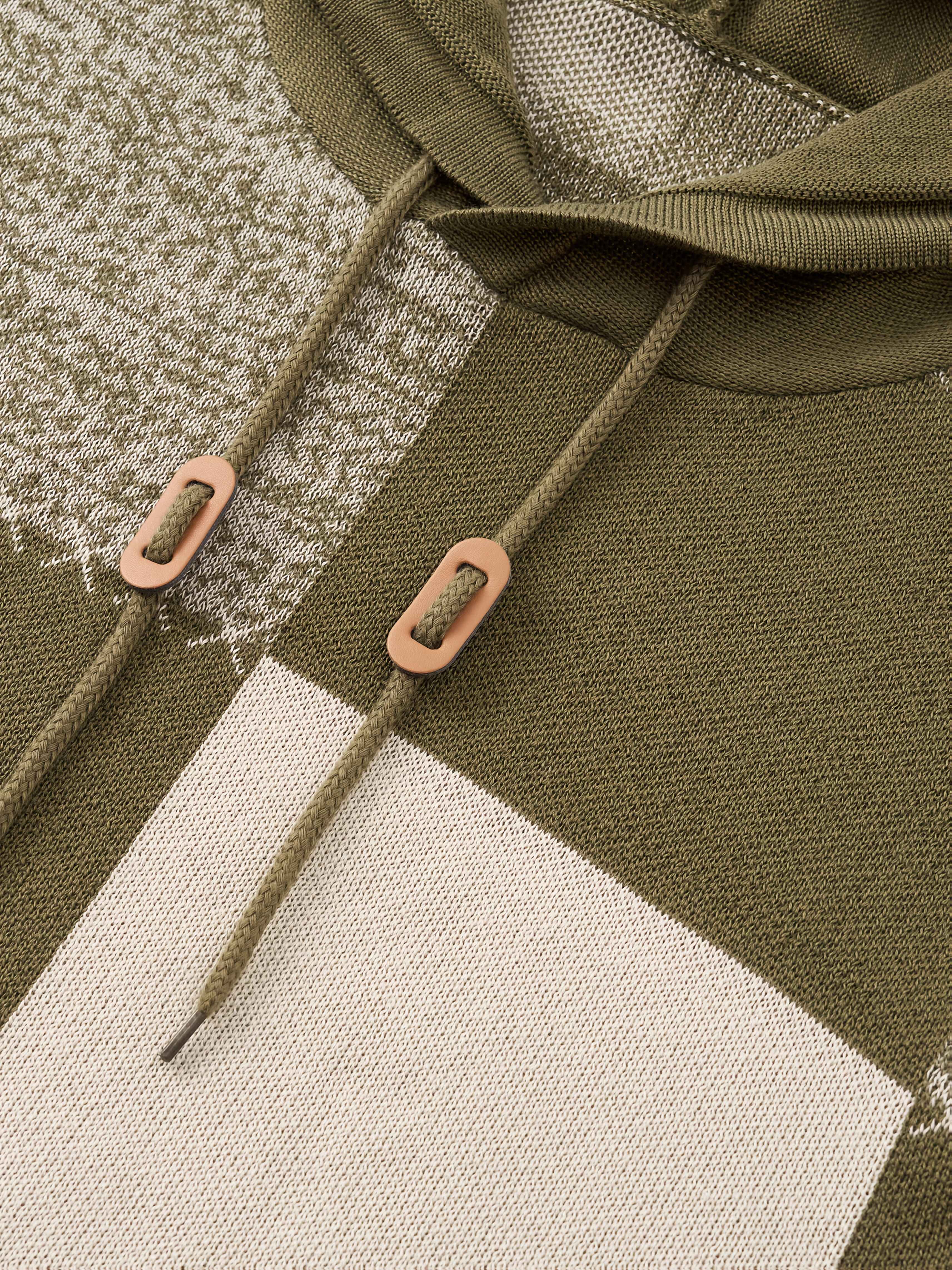 Men's Casual Hooded Color-Block Sweater - Black & Plaid Pattern, Sleeve Pullover with Ribbed Cuffs & Adjustable Drawstring Hood for Spring/Fall Daily Commute & Casual Outings, Sweater Hoodie, Durable Knitwear, Comfortable Fit