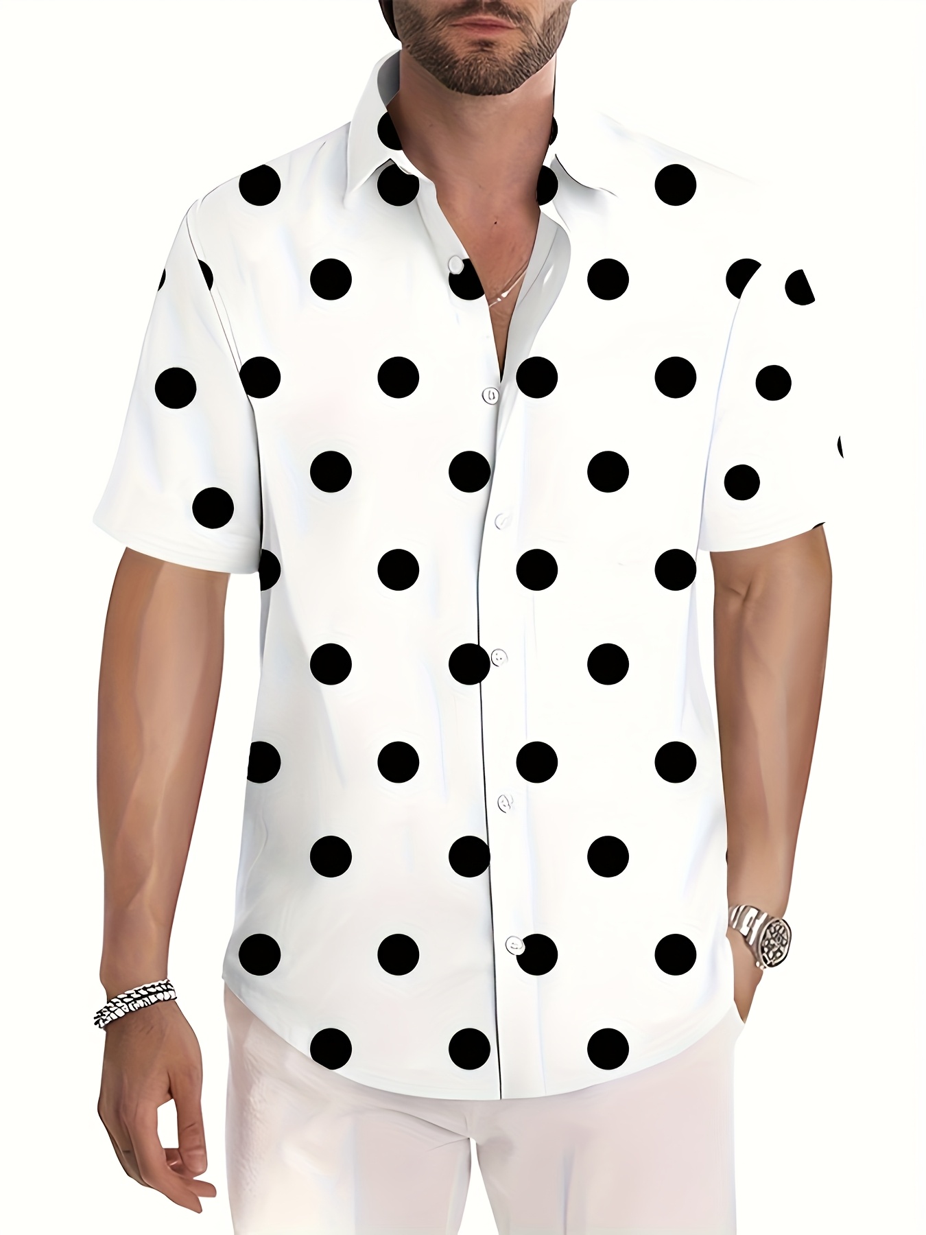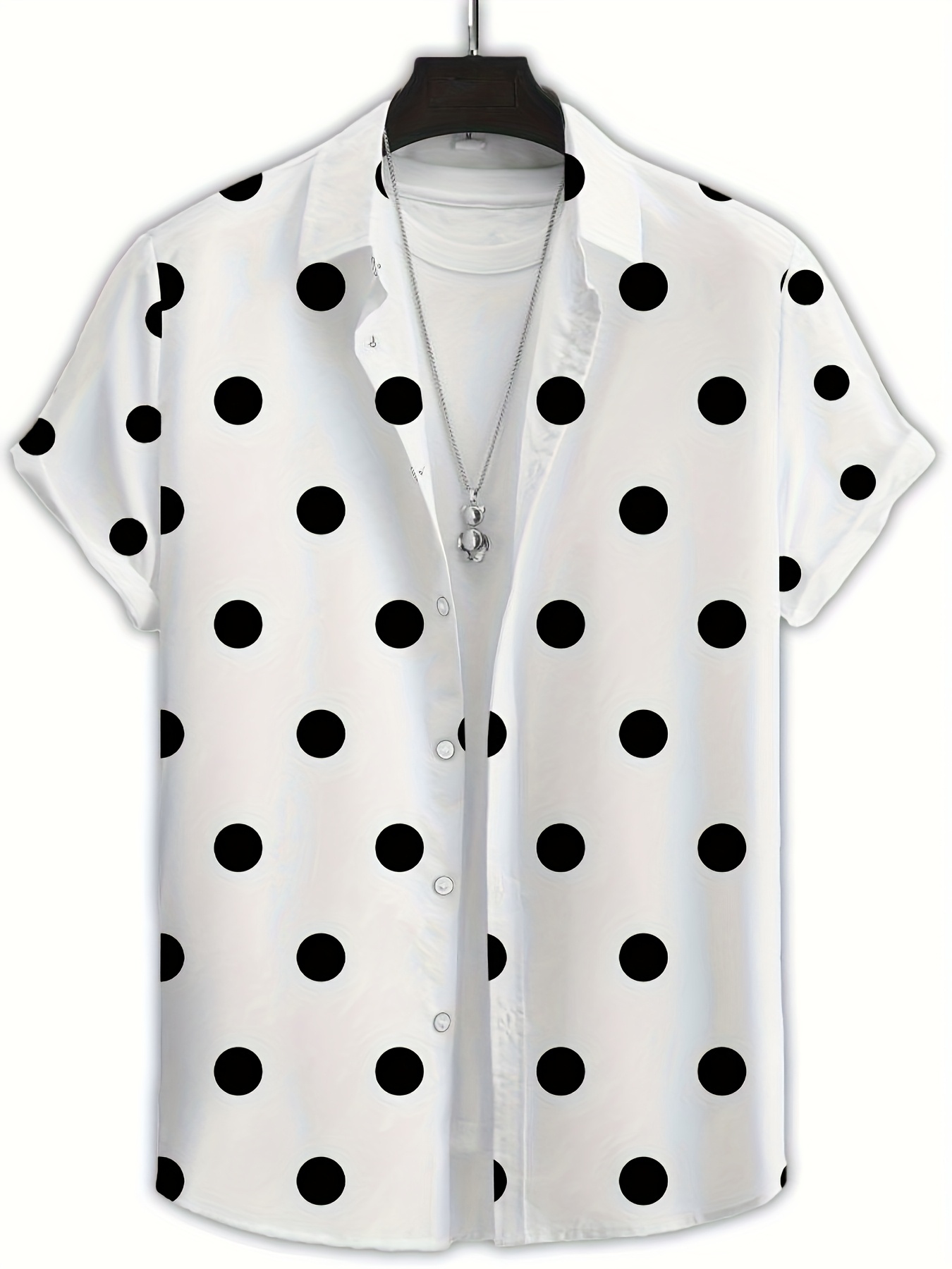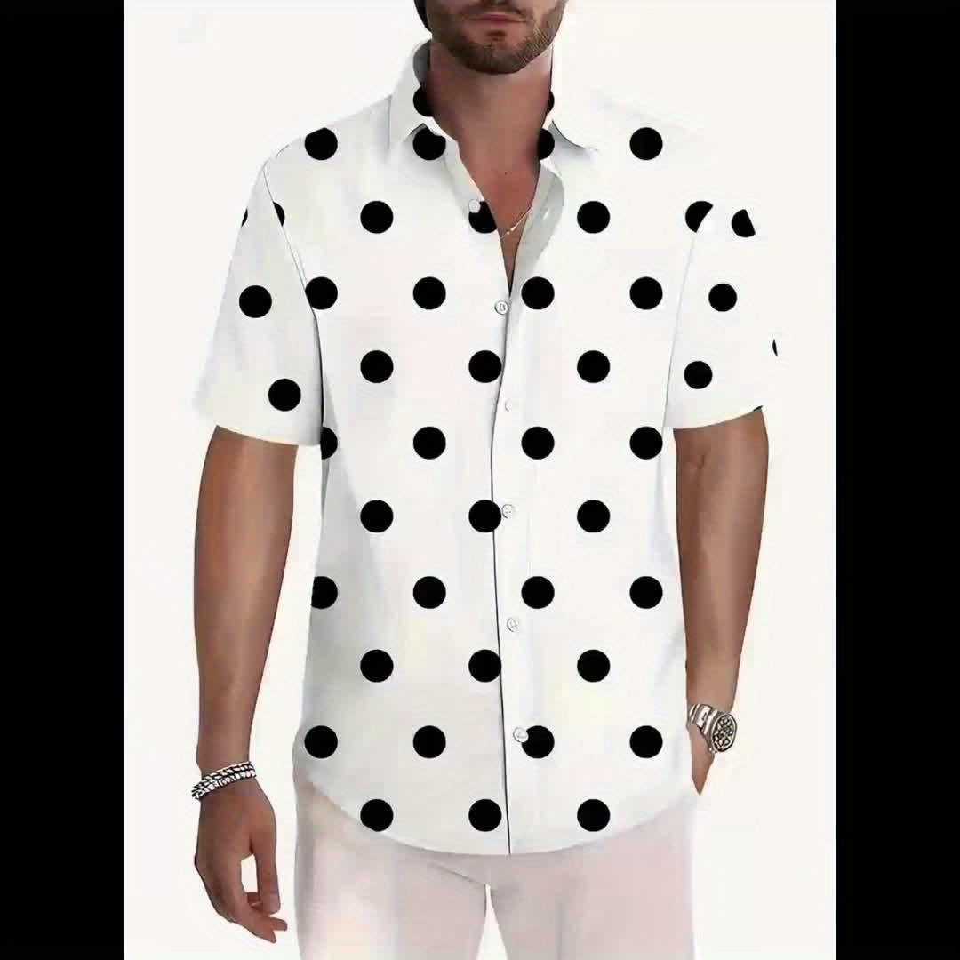 Men'S Casual Short Sleeve Shirt with 3D Black Polka Dot Pattern, Open Collar, Button-Up Front, Lightweight Summer Fabric, Perfect for Casual Attire or Casual Outings, Casual Summer Wear | Polka Dot Shirt | Stylish Button Details, Polka Dot Shirt