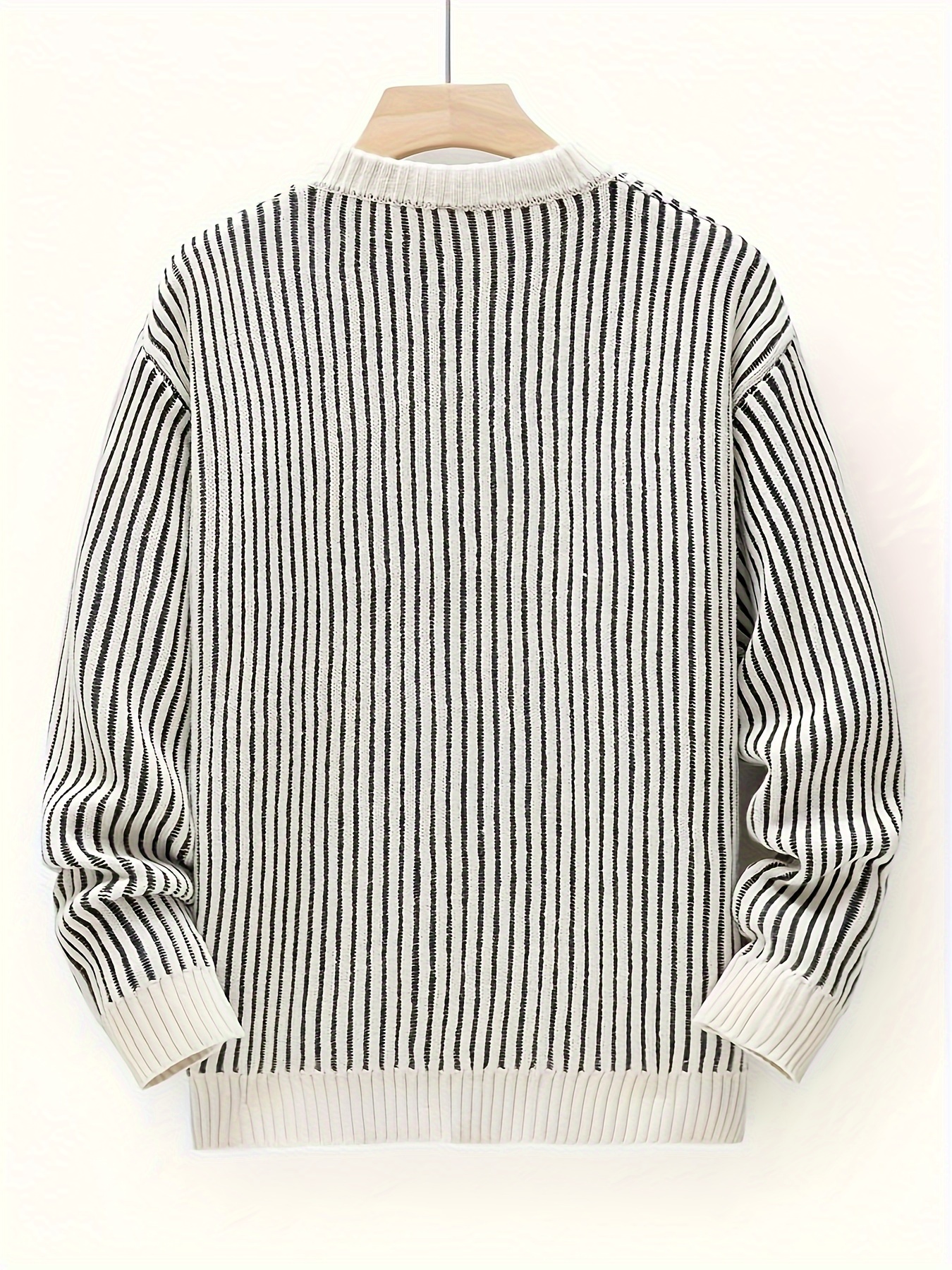 Men's Casual Striped Sweater - Polyester Knit Pullover with Round Neck, Medium Stretch, Regular Fit for Fall/Winter Season