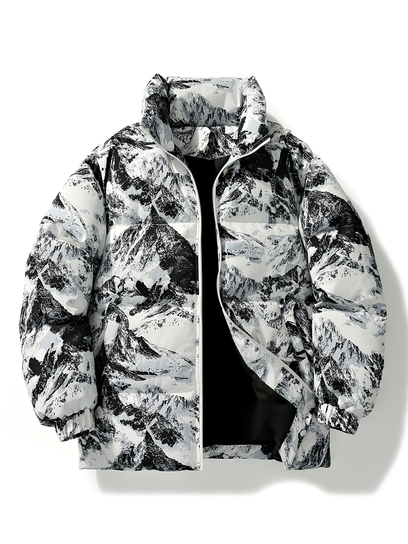 Men'S Retro Vintage Money Print Jacket - Stylish Black & White Patterned Coat with Stand Collar, Zipper Closure, and Pockets for Casual or Daily Wear, Casual Outerwear | Vintage Style Coat | Polyester Fiber Jacket