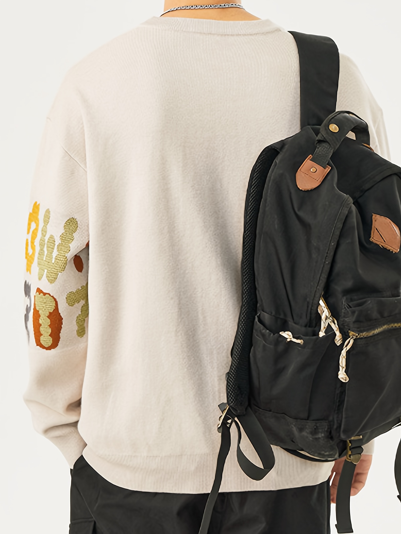 [Men's Sweater] Men's Sweater - Crewneck Pullover | Beige/Brown/Black/Gray/White/Orange/Red/Blue/Purple | Fall/Winter, Machine Washable, Everyday & Formal Outfits, Casual Knitwear, Multicolored Knitwear, Medium Stretch Fabric